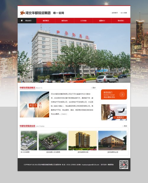 河北華都投資集團有限公司位于河北省廊坊市永興路88號,總注冊資本貳億壹仟貳佰捌拾捌萬元,集團旗下有:廊坊房地產(chǎn)開發(fā)有限公司、滄州房地產(chǎn)開發(fā)有限公司、長征醫(yī)院(御龍大酒店)、物業(yè)服務(wù)有限公司和商貿(mào)有限公司。是集房地產(chǎn)開發(fā)、物業(yè)服務(wù)、酒店、商貿(mào)等多領(lǐng)域投資的綜合性企業(yè)集團。