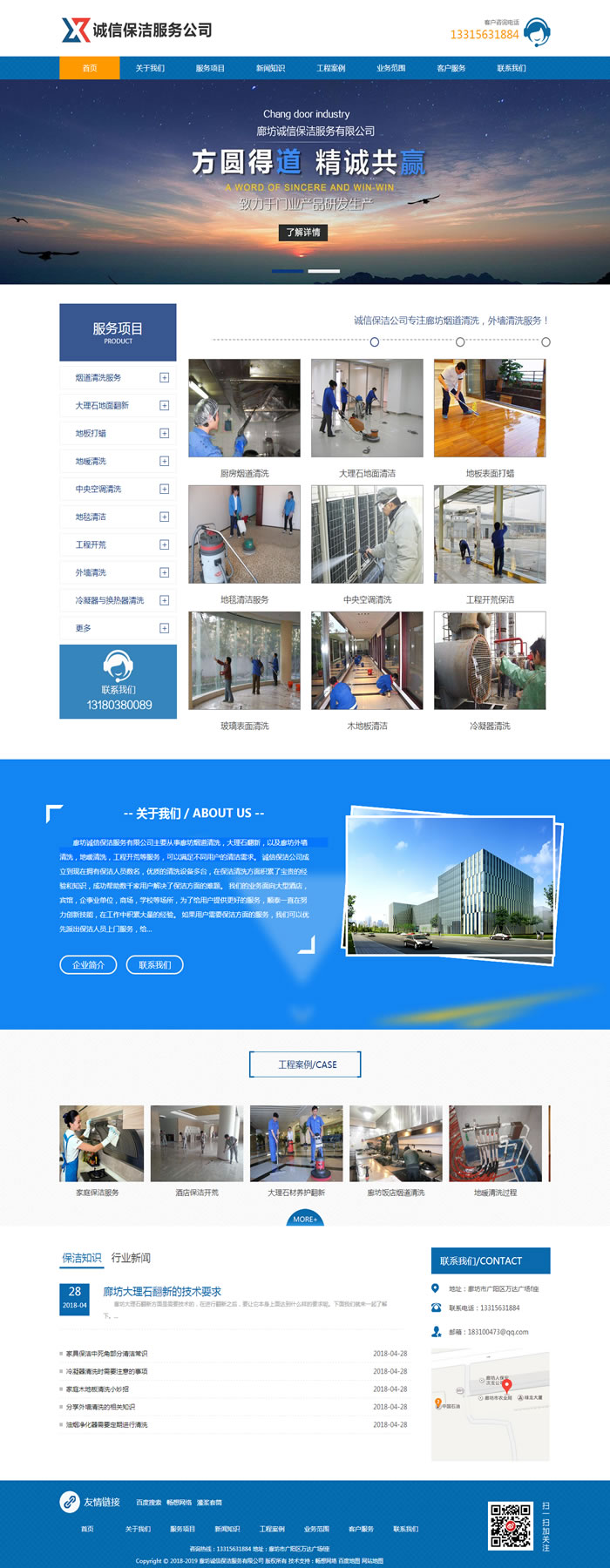 廊坊誠(chéng)信保潔服務(wù)有限公司主要從事廊坊煙道清洗,大理石翻新,以及廊坊外墻清洗,地暖清洗,工程開(kāi)荒等服務(wù),可以滿(mǎn)足不同用戶(hù)的清潔需求。