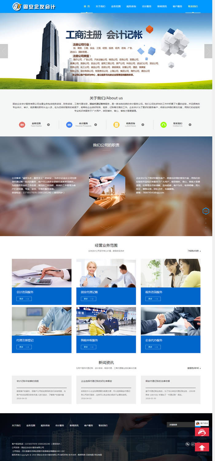 固安企友會(huì)計(jì)服務(wù)有限公司主要業(yè)務(wù)包含稅務(wù)咨詢,財(cái)務(wù)咨詢,工商代理注冊,固安代理記賬等服務(wù),是一家當(dāng)?shù)貎?yōu)質(zhì)的會(huì)計(jì)服務(wù)公司。