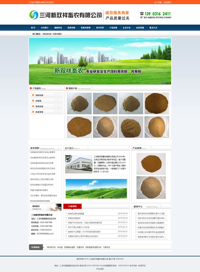 三河新雙祥畜農(nóng)有限公司成立于2004年,公司位于燕郊經(jīng)濟(jì)技術(shù)開(kāi)發(fā)區(qū),臨102國(guó)道,交通便利。公司產(chǎn)品主要以飼料用肉粉,肉骨粉為主,為廣大客戶帶去了更多實(shí)實(shí)在在的好產(chǎn)品,一致受到了廣大客戶的好評(píng)!